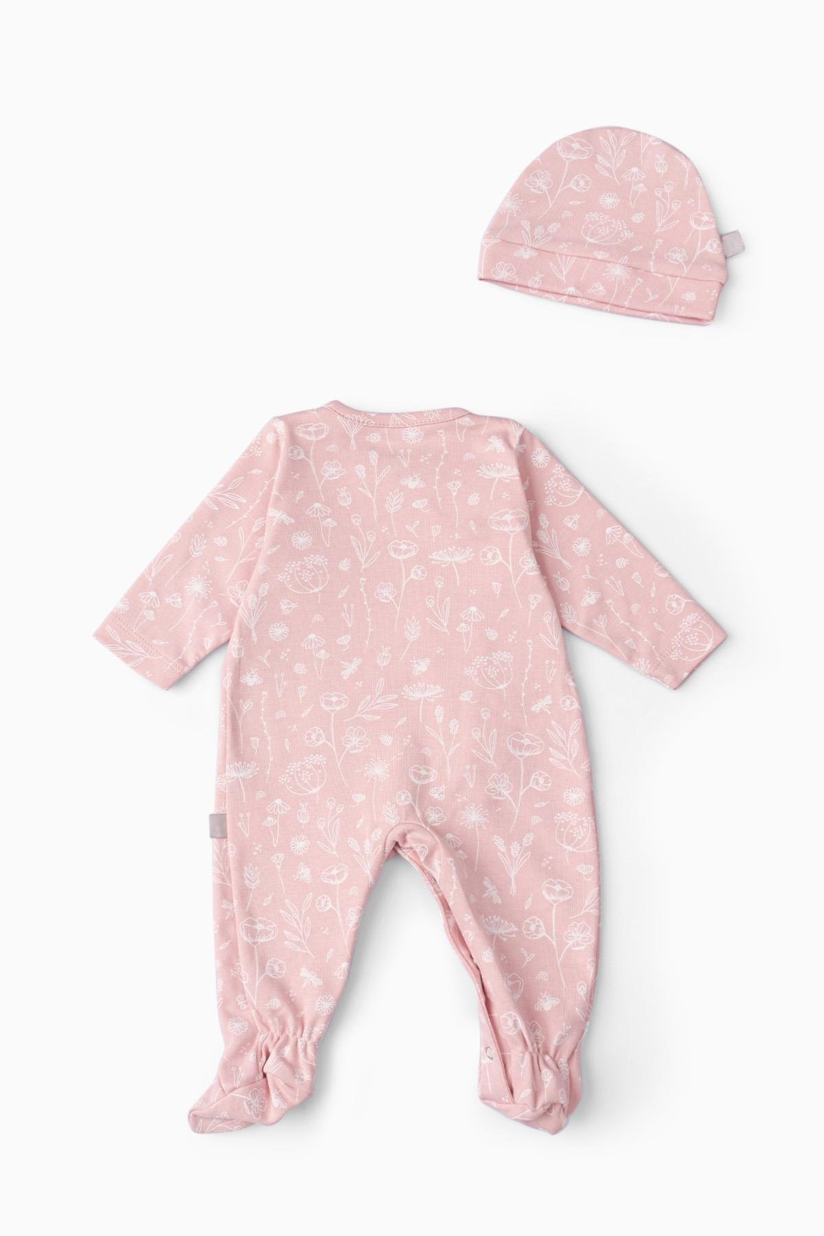 Boumini Bebek Patikli Tulum Şapka Set Bahar Çiçekli Pembe Özellikleri :