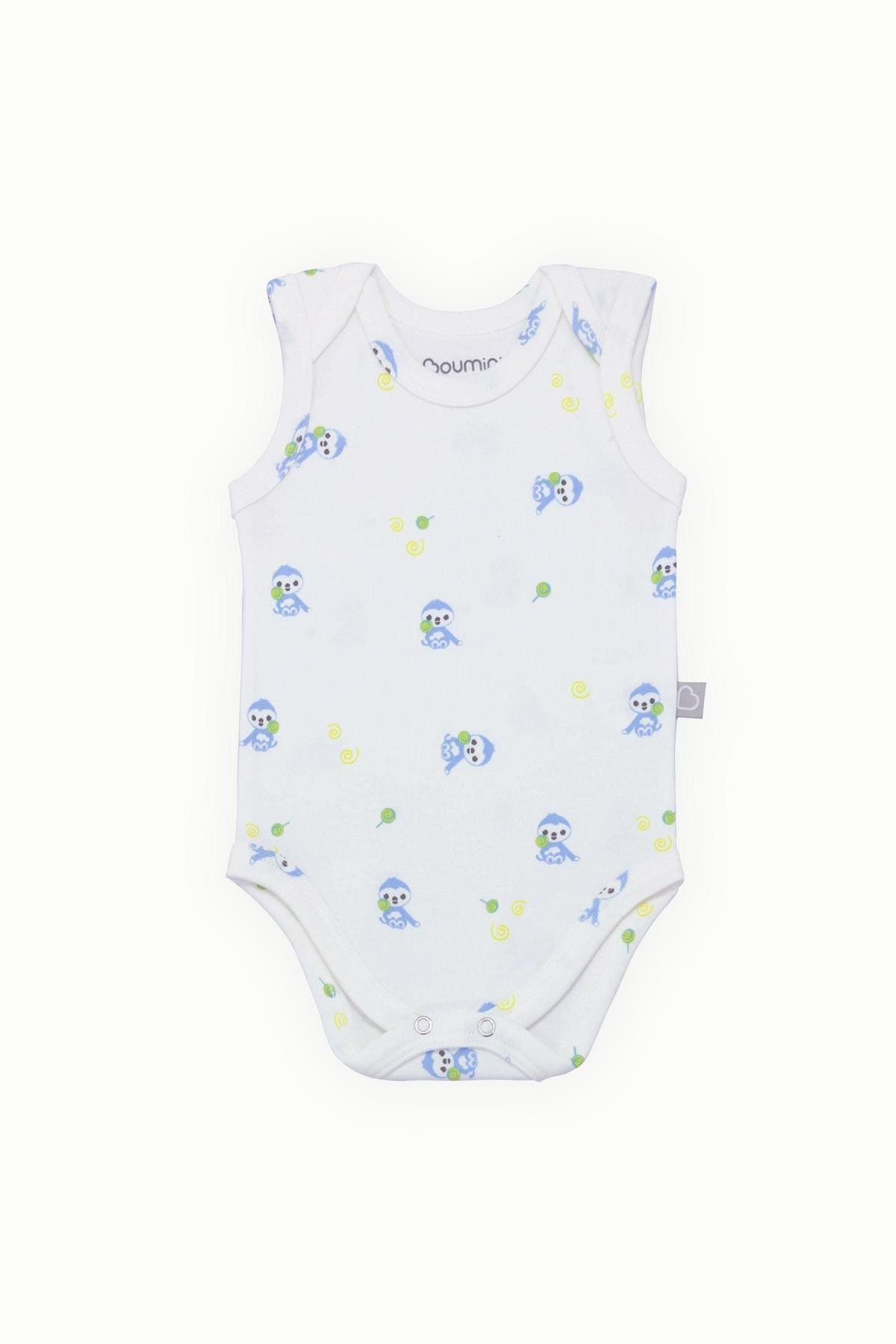 Bebeğinizin hassas cildi için doğal ve nefes alabilen % 100 pamuklu kumaştan üretilmiştir. Zarf yaka ve çıtçıtlı tasarım sayesinde kolayca giydirip çıkarılabilir ve bebeğiniz gün boyu rahat eder. Sevimli mavi miskin deseni ile bebeğinizin dünyasını renklendirip, her mevsim kullanıma uygunluğu ile vazgeçilmez bir parça olacaktır.